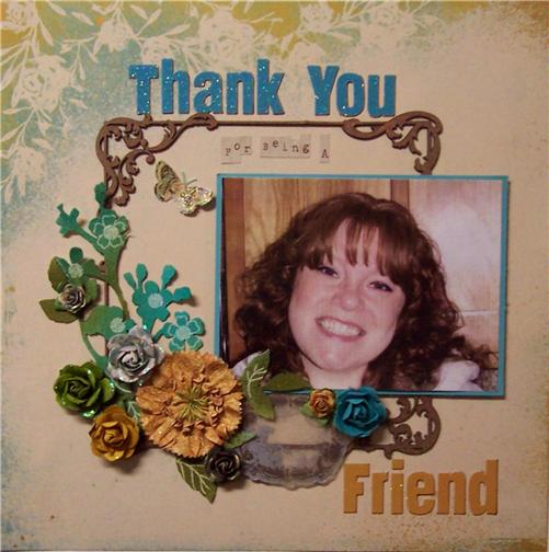 STTG‘s first challenge is to use “Thank You” or “Thankful” on a paper based project. For my example, I decided to use that theme and the current Prima BAP challenge which ends today. Though my first thought was Larry and the kids, I figured everyone already sees page after page of my family and know how much I appreciate them and how truly grateful I am to have them in my life. However, what a lot of people do not know is that Nicolle, my online scrappy bestie, has been been a true friend to me. I’m fortunate to have served on 5 different design teams with her (some current) and I’m so incredibly thankful that we met about a year ago. I don’t know where my head would be without her some times and I know that I can talk to her about literally anything…what a gift! She’s a real listener, which is so rare these days and I greatly appreciate everything she does to contribute to the teams we’re on. She’s focused, dedicated, loving, caring, generous, responsible and a wonderful friend. She’s fabulous wife and mother. I only wish there were some way my page could capture all of that, but this will have to do. lol