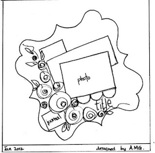 First up, we have the August Sketch Challenge. For my example, I went with Prima’s Meadow Lark collection. Everything used on my page is by Prima except the bit of trim from my stash (not sure who it is by). Here’s what I came up with: