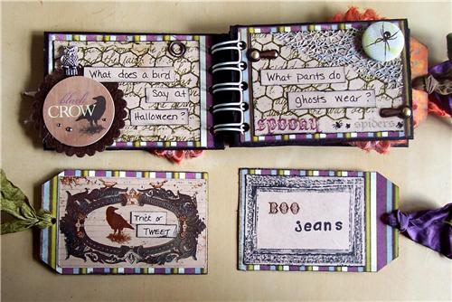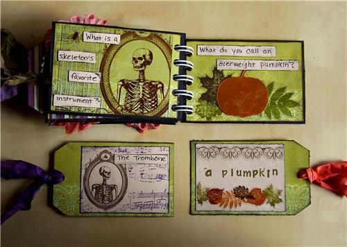 For my entry, I decided to create a tp roll tag album with Halloween Riddles for my kiddos, using several products from May Arts “Partners in Craft” and Helmar “Preferred Partners” (these partners are noted in the materials section below the pics). Here’s what I came up with: