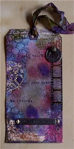 After taking a long break from crafting I’m now getting myself ready to re-enter the craft world, so to get my feet wet I figured a tag would be the best way to go. π When I think about tags, I can’t help but also think about Tim Holtz and his fabulously grungy, vintagy (is that even a word? lol), technique-filled creations, so I stopped by his blog for inspiration.