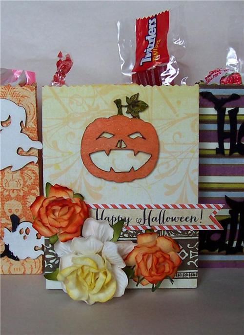 Happy Halloween everyone! I’m up again at the Creative Embellishments blog with a project to share. This week, I decided to share a few little treat bags I created for my kiddos. These are real simple, quick, and easy to make, so they’d be a snap for Halloween parties and classrooms as well. For my base, I used the Tim Holtz In the Bag die, but you can easily find templates online that you can trace and cut out too.