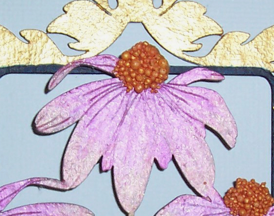 I added Mini Prills to the flowers to give them added texture. Here you can see how the etching on the chipboard pieces add subtle details to the pieces even after being altered:
