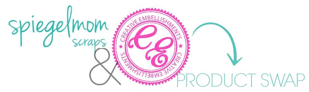 Hi everyone! Thank you for joining us this week for the SpiegleMom Scraps and Creative Embellishments Product Swap Blog Hop! What an awesome duo! Their products compliment each other beautifully, and it was such a blast combining fabulous products from both companies! I hope you enjoy the project I came up with! Be sure to leave a comment at each stop (including mine) along the way for YOUR chance to WIN a $25.00 gift card to SpiegelMom Scraps OR a $30 gift certificate to Creative Embellishments! That’s all you need to do in order to enter to win! 😀 You have a whole week to complete the hop (this hop is open until 11:59 pm ET on March 7th). Be sure to let your friends know too! The blog list is at the bottom of this post to guide you to your next stop. I hope you have fun checking out all the inspiration we have in store for you!