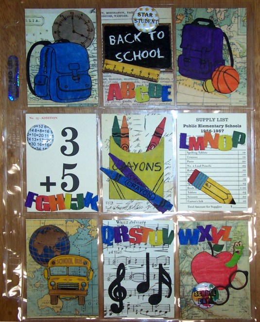 As we say goodbye to summer and usher in the new season with its cooler weather, I decided to share two separate projects I created recently using some fabulous products by Creative Embellishments. 😀 First up, I created a four ATC set for a trade partner I met through a facebook group. Since all 4 were for a single recipient, I made them all similar, yet different. For the base, I distressed and layered papers that I’d stamped with the CE Distressed Text Stamp and splattered with black India ink, then swiped a bit of gesso onto corrugated cardboard. I topped each cardboard piece with some wood veneer pieces from the CE Summer,  Anchor, or Boat Wheel sets. I finished them with a bit of tied twine around each piece. Here’s how they turned out: