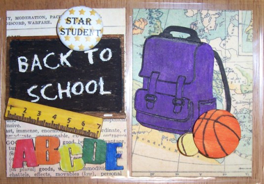 Next, I created a coffee themed pocket letter. For the base, I dyed the white cardstock background paper with real coffee grounds, then splattered it with a Lindy’s Stamp Gang color shot and Tattered Angels glimmer mist used the same color shot to add “cup rings” to the page. I then added fussy cut images from a Heartfelt Creations paper pad. I then added my CE Coffee set pieces which include the title (altered using acrylic paint), the layered CE “to go” cup (altered with with gesso and acrylic paint), and the cup and saucer (altered with PITT artist markers). I left the wood veneer Coffee Cup piece bare. Here’s how my pocket letter turned out: