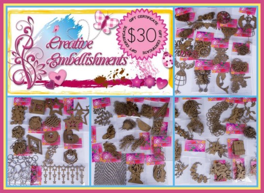 Play along with my challenge (either make a package or alter one! So either take an empty container and alter it or make an envelope box, gift bag, etc.) in the Creative Embellishments Birthday Crop for a chance to win this amazing prize: