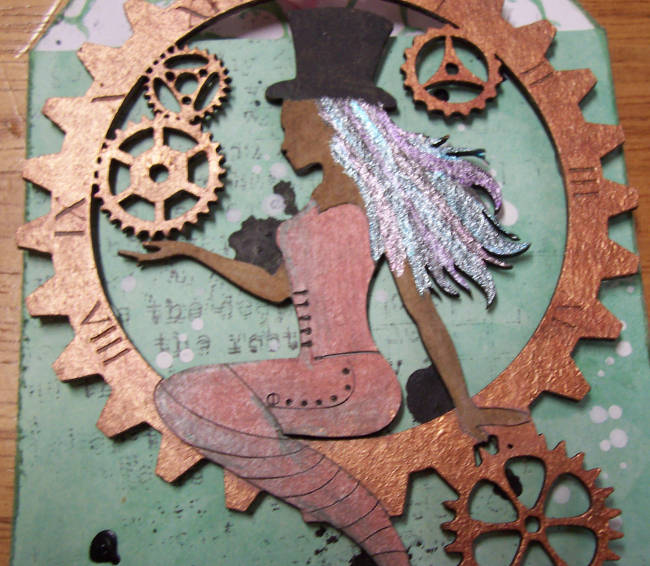 Close up of the steampunk pocket tag and the altered jumbo paper clips it holds: