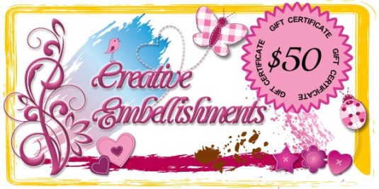 Visit and follow the Creative Embellishments blog for more creative inspiration provided daily Mon-Fri by their extremely talented DT, plus some weekend shares as well! CE also features a monthly challenge (always pinned to the top of their blog)! Enter for your chance to win a $50 gc from their store!