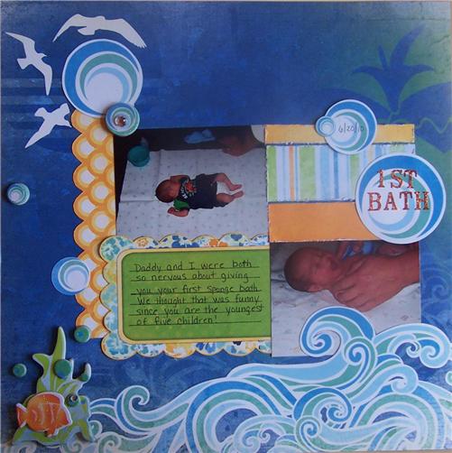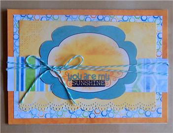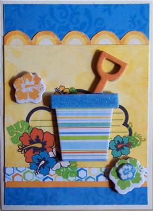 There’s a fabulous sketch for May on the Bo Bunny blog. It’s perfect for any style of card making, so my first instinct was to create a mixed media card for it. After a little more thought though, I decided to create one using mostly paper so that I’d be using more BB product. 😀 For my card, I went with their Barefoot and Bliss collection from a couple of years ago. I love the bright cheery colors in this line. Everything used on my card is from this one collection! Here’s what I came up with: