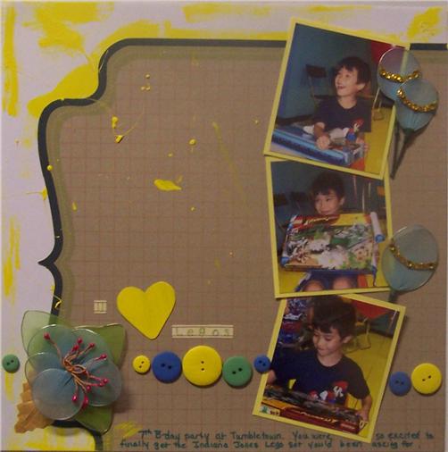 Digging through my stash, I found this Creative Imaginations paper. I have no idea when it is from. All I know is that when I first started scrapping, I bought a huge lot of paper from someone who was getting rid of their stash since they were no longer into papercrafting. I figured it would be perfect for this challenge!
