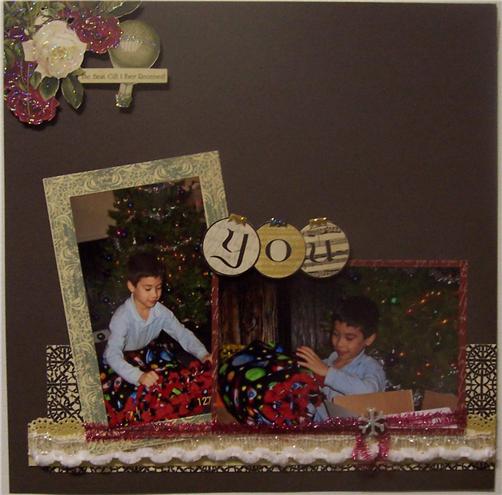 I used Best Creations Merry Christmas papers and diecut stickers for the entire layout. Though it doesn’t show well in the pic, Their papers all feature gorgeous glittery accents that are sealed to the paper (so no mess!). Since the papers weren’t smooth, I used Helmar’s Premium craft glue to adhere the papers and to reinforce the adhesive on the stickers. I love that even though the Premium Craft Glue is a liquid, it does not cause the paper to welt, curl or distort in any way! I get fantastic results every time! Here’s Charlotte’s fab sketch we got to work with: