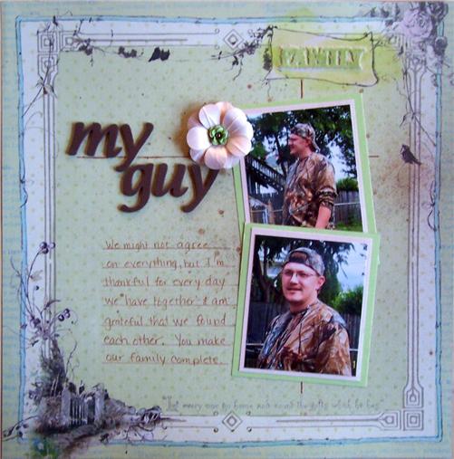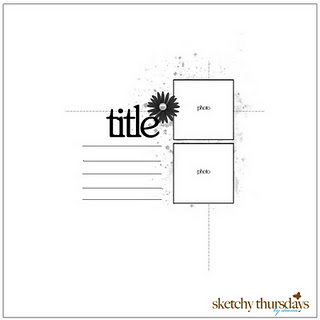 The December GDT sketch on Sketchy Thursdays has the additional requirement that your page reflect gratitude or thankfulness. When asked what am I most thankful for or grateful for, the first thing that comes to mind would be my family. Larry and the children. Though I’m usually tempted to scrap the children’s photos for a page like this, when I thought about it more, I kept going back to the thought that our family would not be complete without Larry. I can’t think about the children without also picturing him with them. Playing with them, teasing them, smiling at them, etc…then I knew I wanted to scrap a couple of photos of my handsome hubby that I’ve been holding onto.